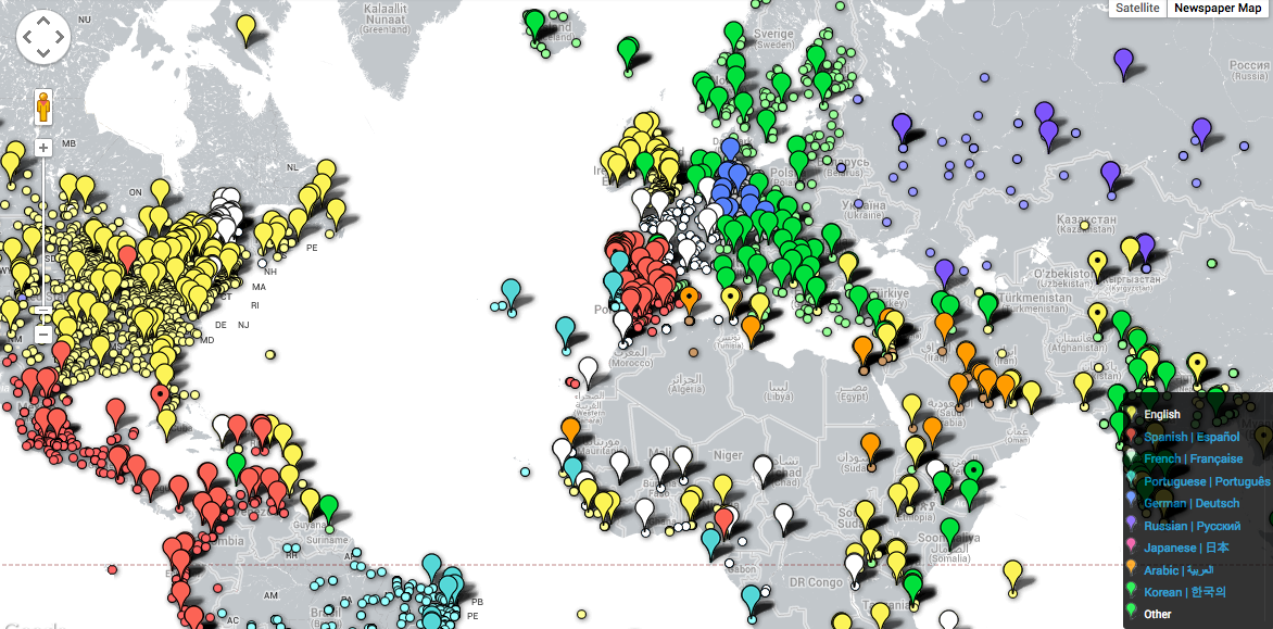Vous y découvrirez une carte du monde interactive localisant, à en croire son slogan, l’intégralité des journaux d’actu publiés dans le monde.